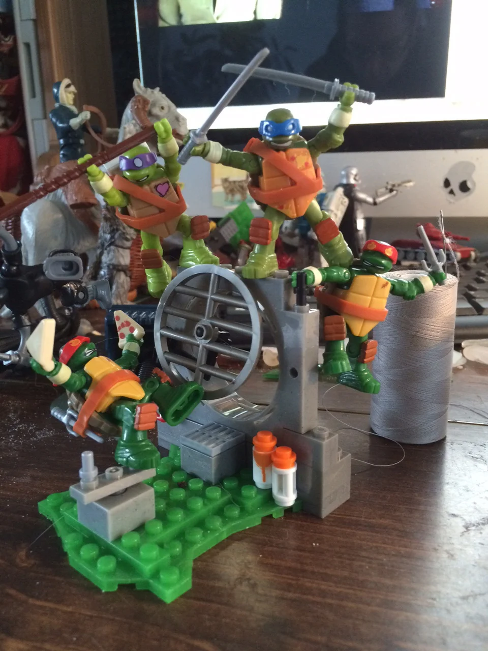 A close up of this section. These tiny TMNT figures are fun and distracting!