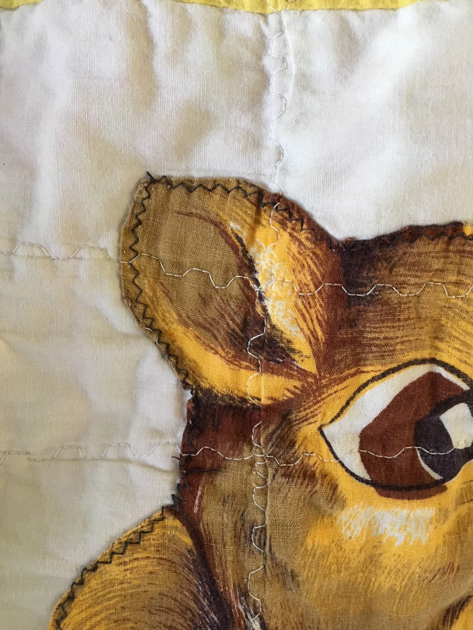 Last week we found this weird sweet chipmunk quilt in a local thrift shop. I passed it over at first, thinking it might be too expensive. But I ended up going back and it was $20 with 75% off!! Score! This quilt is weird and wonky and obviously homemade, and I love it!